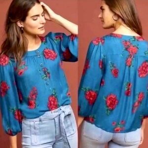 Banana Republic Black Silk Ruffle Elastic Tie Waist Top Blouse Medium
