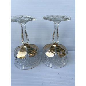 2 Pink Glow Vintage Uranium Etched Depression Glass Goblets