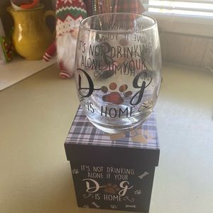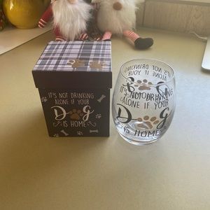 NIB stemless wine glass “IT’S not drinking alone if your dog is home”