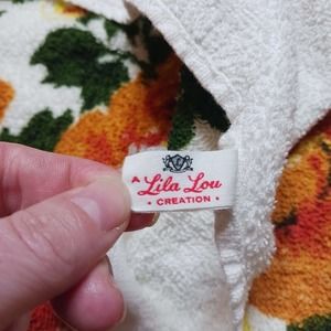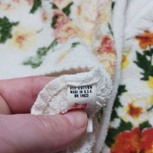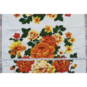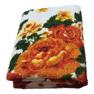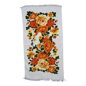 Vintage Bath Towel Set of 2 Gold Orange Brown Green Colors Flowers Retro Fringe