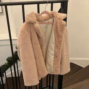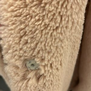 pink fluffy coat, buttons
