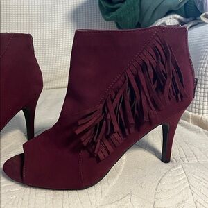 Pink crochet ribbon and bow surrounding nude sheer mesh