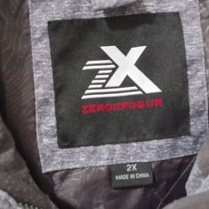 Zeroxposur Women's gray&white zip up opening w/removable hood size 2X. Has 2 side snap pockets, adjustable wrist and waist tightness. no zippered lining.