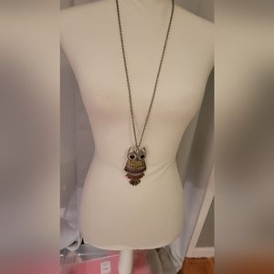 Silver Tone Colorful Articulate Owl Pendant with Lobster Claw Clasp
