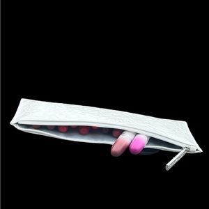 This is a super cute makeup case that zips up! It’s white and stylish! It does NOT come with the lippies or anything inside of it. It’s brand new. Please check out my other items, thank you!