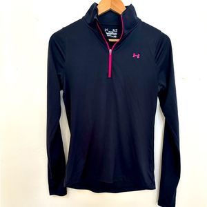 Under Armour Black & Pink Semi Fitted 1/4 Zip Pullover Size Small. In good condition.