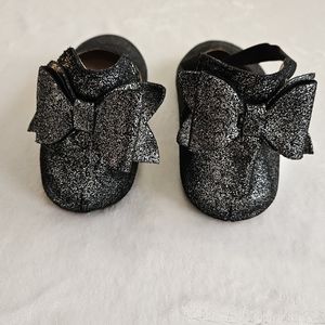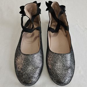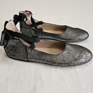 Mommy Silver Black Metallic Bow Back Ballet Flats Slip ons size 40 (8.5-9 US)