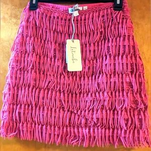 Brand New Anthropologie Let Me Be Fringe Mini Skirt Pink XS Hot pink Waistline for this garment is approximately 24 inches.