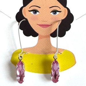 Silver and Pink Rhinestone Crystals Silver Plated Long Hook Earrings Item #355