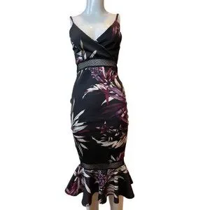 Boohoo Womens Bodycon Fishtail Dress Backless Adjustable Strap Black Purple SZ 4