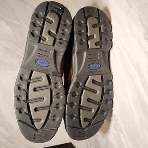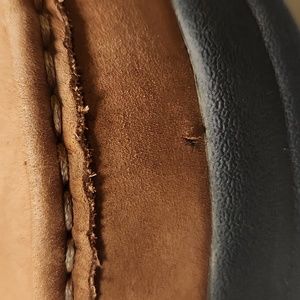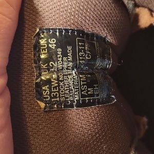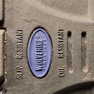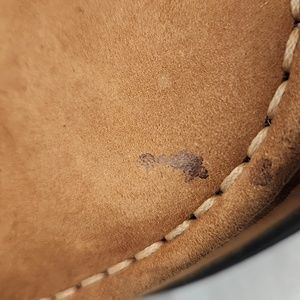 GUC Men's 13 EW Wolverine steel-toe 6-inch work boot. Color is brown nubuck leather upper and rubber molded slip-resistant soles. There are a couple of small flaws and one small stain (please see pics).