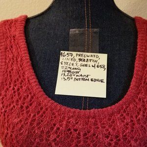 #657 Preowned Columbia S Red Eyelet Cotton/Linen Knit Lined Tank OBO!