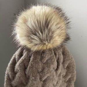New without tags. Perfect condition. Tan color, faux fur ball on top. Classic style.