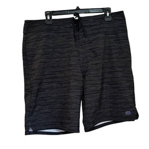 travis mathew Black & Blue Striped Board shorts sz 34 EUC