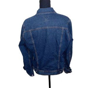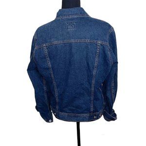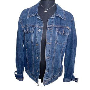 calvin klein dark blue denim jacket 22.5" pit to pit 23" length size large in excellent condition no damage, tears, holes or stains Ships with care in 1-2 business days Bundle to save Questions? Please ask before purchasing 🙂 Please keep in mind measurements are approximate 🙂