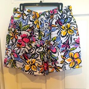 Beautiful long sleeved tiered, baby doll top with multiple floral prints and black lace yoke. Colors are primarily black burgundy, off-white with some teal accents. Suzanne Betro 3X is approximately equal to a size 22 – size chart above.