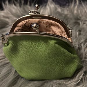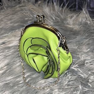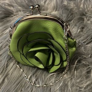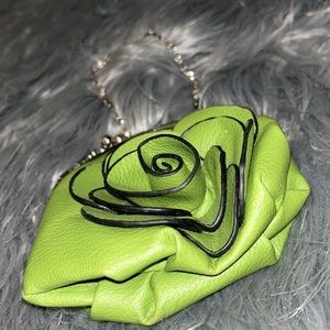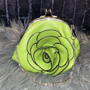 SOLD💥Elegant FLORAL Kiss-Lock Evening Vegan Green Rose Clutch/Wristlet ChainGUC