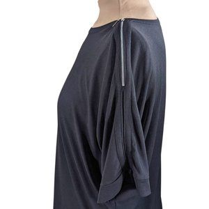 Chico's 3/XL Black Short Sleeve Blouse with Silver Shoulder Zippers
