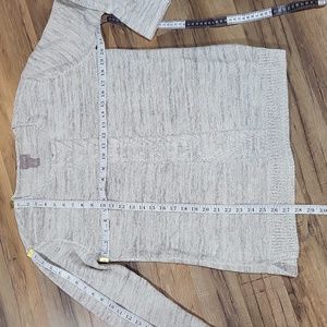 CHICO'S White Black Gold Space Dye Scoop Neck 3/4 Sleeve Tunic Sweater - S
