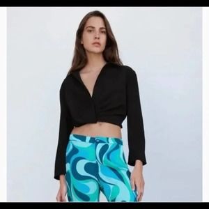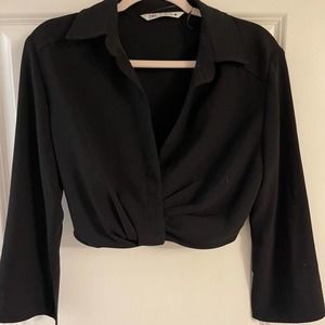 Zara Women’s Black Crop TopCollar V Neck size XS NWOT