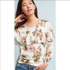 Anthropologie Harlyn Ritchie Floral Ruffle Sweater