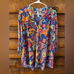 This top is absolutely stunning, has a soft velvet field to it can be dressed up or down