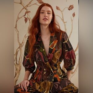 Farm Rio Blue Nature Beauty Short Sleeve Maxi Dress