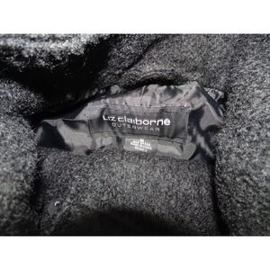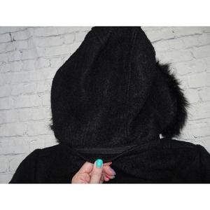Liz Claiborne Sz M Women's Black Boucle Faux Fur Hooded Wool Blend Swing Coat