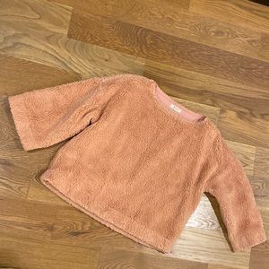 Madewell Super Fury/ Sherpa Top. color tinted blush. 3/4 sleeves, lined, boxy fit. Only worn twice.
