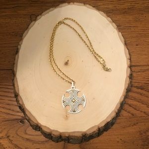🌸VTG Trifari Circular White and Gold Pendant Necklace