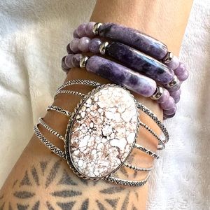This is for one bracelet I have it in Mahogany obsidian, tigers eye, dalmatian Jasper, pink zebra Jasper as well. Please see my closet for a wide variety of magical jewelry! I love to bundle!