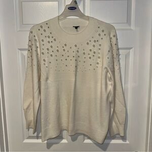 Vintage Women’s Pearl Embellished Off White Cardigan Sweater- Medium