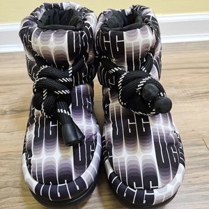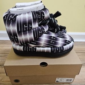 Updating UGG's icon with maximalist puff uppers and all- over UGG print, this bold take on the Classic is lined in ultra-cozy UGGplush™ wool blend for unparalleled softness and warmth. Pair with puffer jackets for head-to-toe volume.