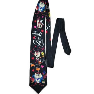 Looney Tunes Mania Vintage 1994 Taz Devil 100% Silk Black Tie