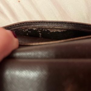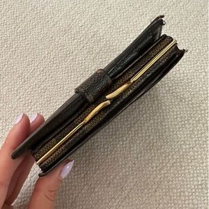 Monnaie Viennois kisslock wallet from 2000 in used and vintage condition exterior condition good edges, inside has peeling (pictured) date code is inside the opening of wallet on the side and reads as