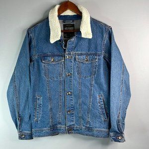 Hollywood Mens Sherpa Collar Jean Jacket Blue Mid Denim Wash trucker chore S