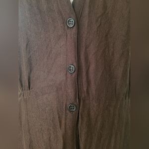 Says size Small on the tag and intended for an oversized loose fit... am thinking it was well beloved and worn before I found it. This dress has a feeling to it... a soulful, strong, and easy character. I have cared for this dress, though it does seem to have loosened from age... the sleeves *might* have been customized from a long to short sleeve... there is a lot of craft in the handwork on this dress including the hem.
