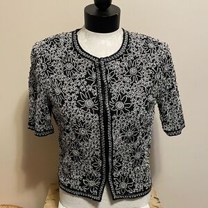 This vintage sleeveless knit top is labeled 59% silk. The light knit material is all black and has some stretch. A black top is a staple garment and the subtle details of this top give it something special.