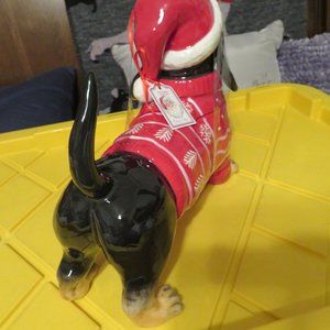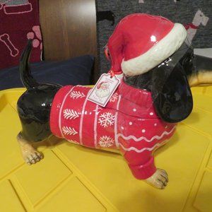 Large Blue Sky Dachshund Christmas Sweater Santa Hat LARGE 13” Cookie Jar NEW
