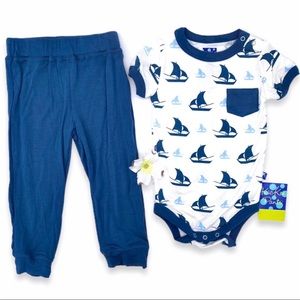 NWT KicKee Pants Natural Sailboat Bodysuit & Pants, 18-24m