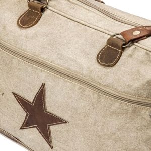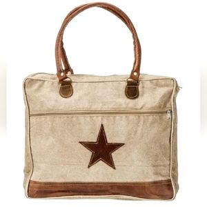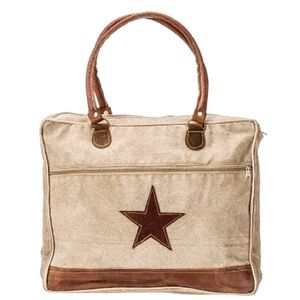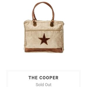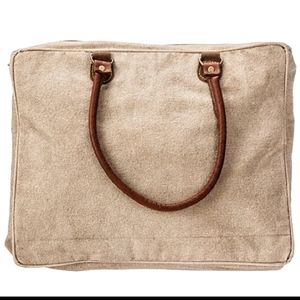 New With Tags from The Barrel Shack “The Cooper". This handcrafted bag is made from a combination of repurposed Canvas and Leather. It has a zip top closure with two interior convenience pockets to keep you organized. It also has a front pocket and zipper.