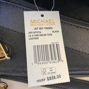 Michael Kors Purse jet set large chain tote shoulder bag & trifold wallet black