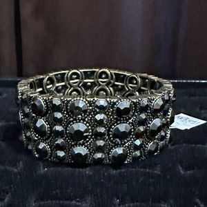 Antique Matt Gold Tone With Cut Crystals Lia Sophia “Twilight” Stretch Bracelet