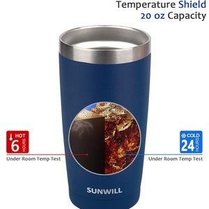 Insulated Stainless Steel: SUNWILL 20oz tumbler is with Double-Wall vacuum technology to keep drinks hot for over 6 hours and cold for around 24 hours.