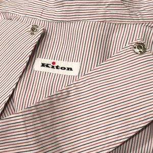 KITON Red White & Blue Striped Shirt 4 Custom Made Equestrian Style $500