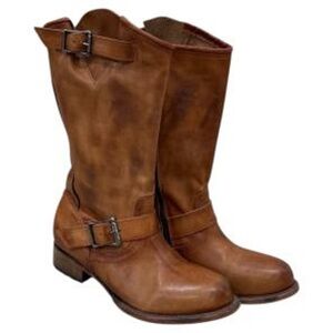 Rolled handles. Top zip closure with outer snap tab. Interior wall pocket. Textile with leather trim.