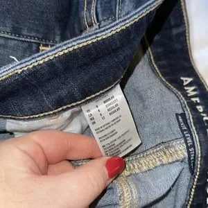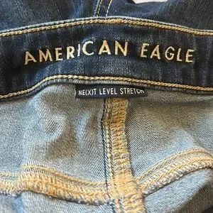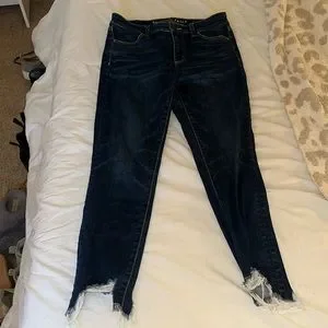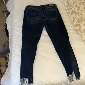 American eagle next level stretch hi rise crop jegging, dark wash, fringe at the ankle , great condition
