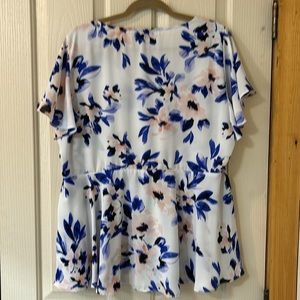 LIKE NEW!! Sophistication and a flattering silhouette collide to bring you this georgette blouse with flutter sleeves and a peplum hem; making days in the office much more stylish! No rips, holes, stains, snags, fraying or pilling. Smoke-free, dog-friendly home.