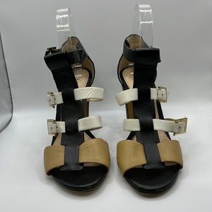 Vince Camuto Adriana Heels Gladiator Sandals Leather White Black Tan Womens 8 M