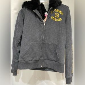 VS PINK NFL Pittsburgh Steelers Faux Fur Sequin Bling Jacket BNWT SZ Medium